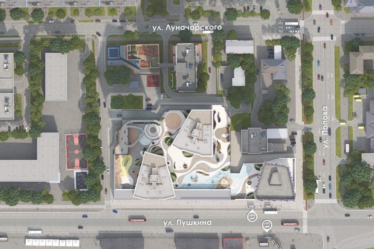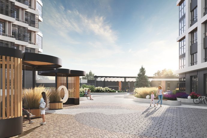 Яркими акцентами двора станут авторский фонтан с зеркальными сферами и деревянные качели высотой в четыре метра. На кровле входной группы расположится лаунж-зона с беседками и шезлонгами, где можно отдыхать с друзьями или приятно провести время с семьей.