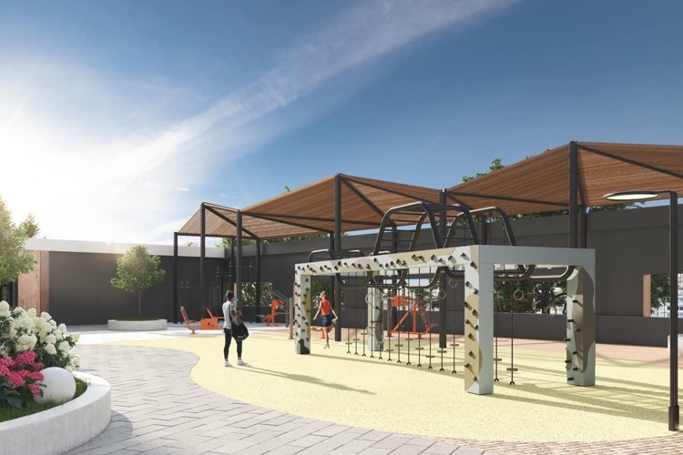 А еще здесь будут батут и игровой комплекс в футуристическом стиле с туннелями и горками