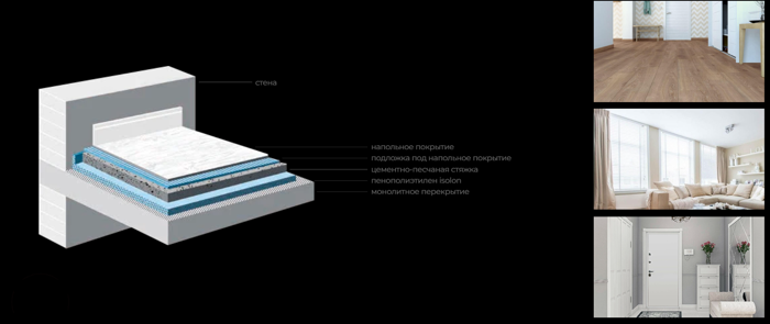 Несколько уровней акустической защиты: кирпичные стены между квартирами и коридорами, монолитный железобетон межквартирных стен, полы с изолирующим слоем из пенополиэтилена