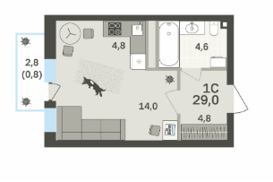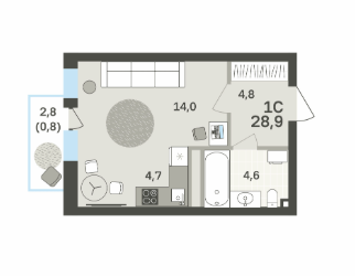 Площадь от 28.8 м2