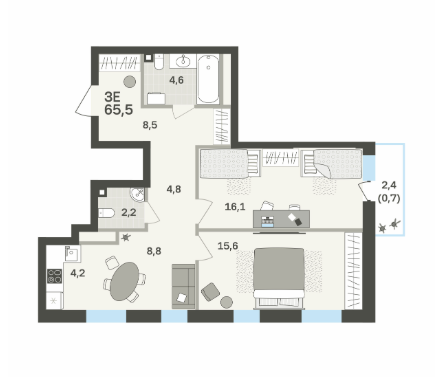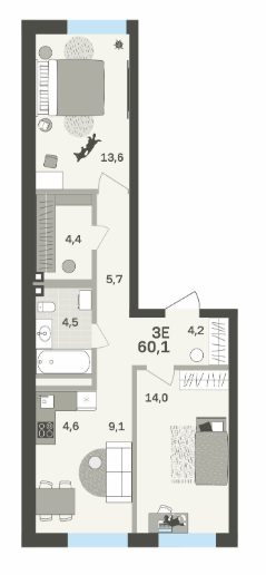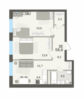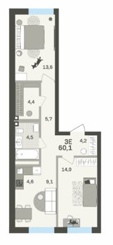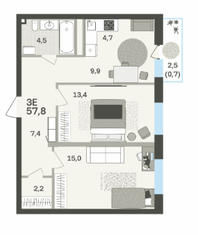 Площадь от 57.3 м2