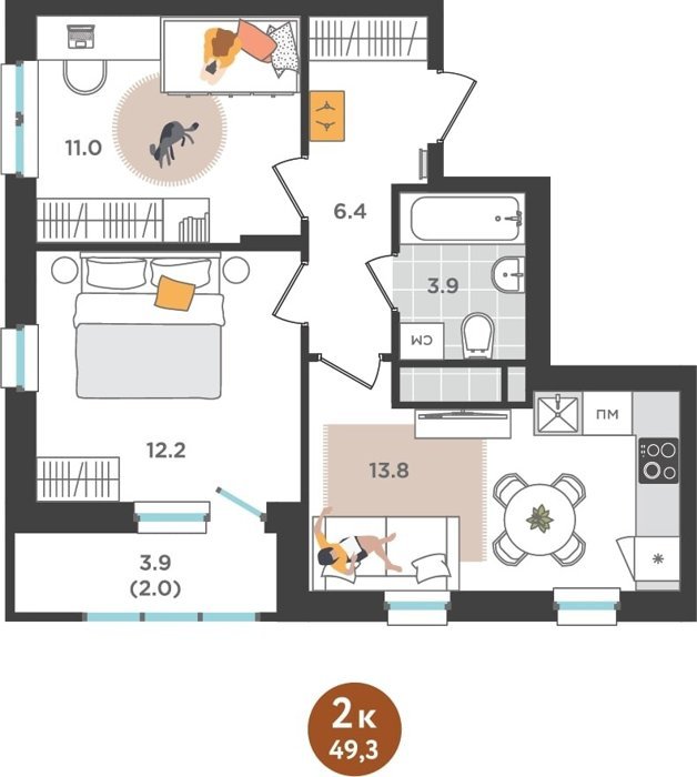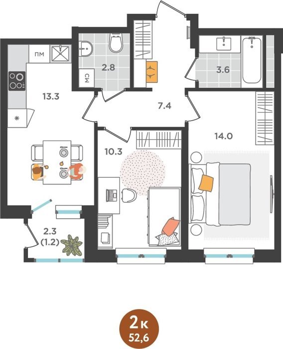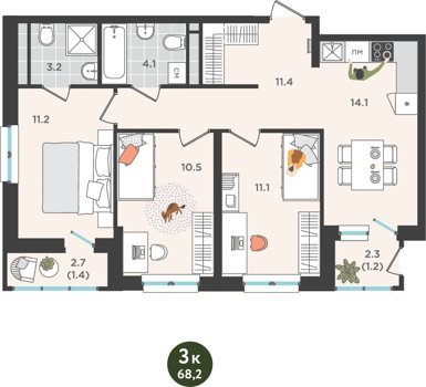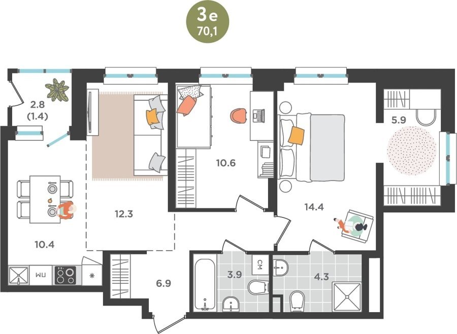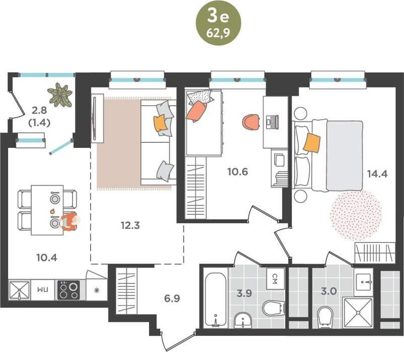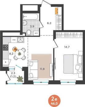 Площадь от 60.9 м2