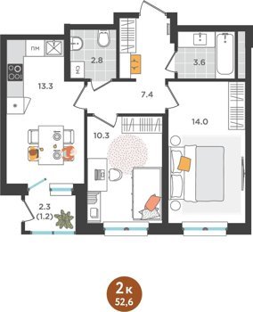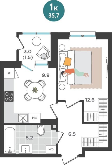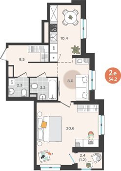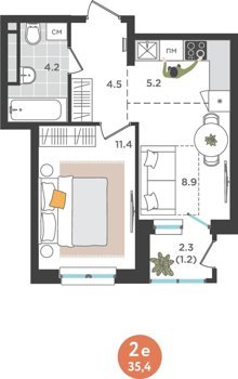 Площадь от 35.4 м2