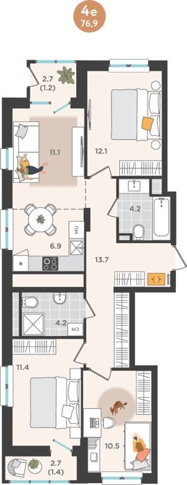 Площадь от 74.7 м2