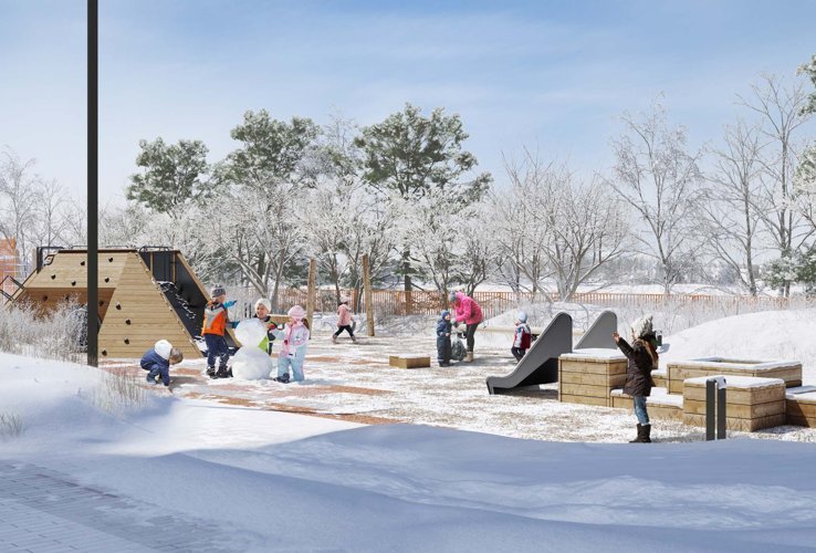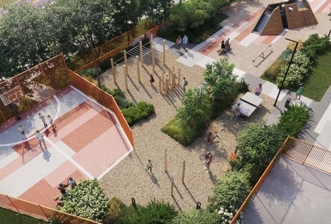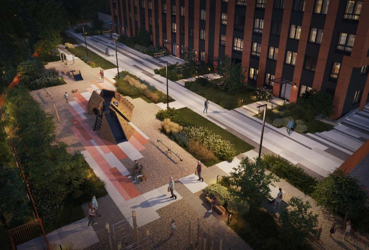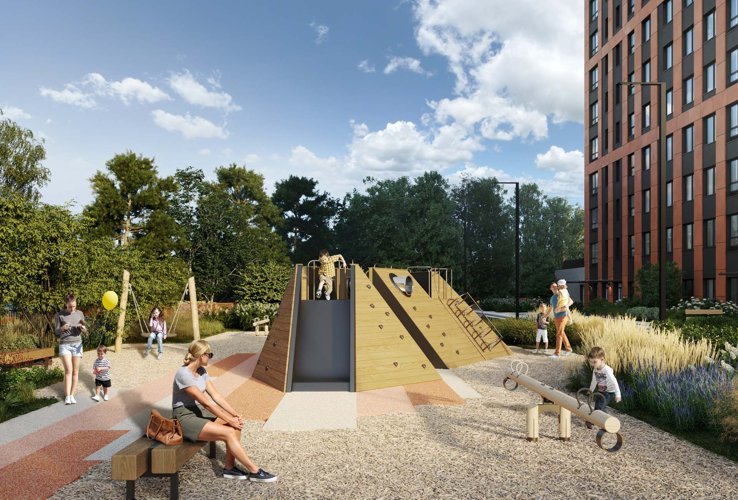 Двор выполнен в концепции Walk&Play. Пространства для прогулок, игр и отдыха плавно перетекают друг в друга. Закрытая территория, отсутствие машин и полная приватность обеспечивают безопасность.