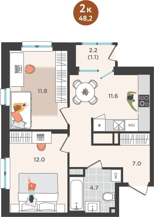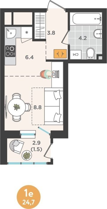 Площадь от 24.7 м2