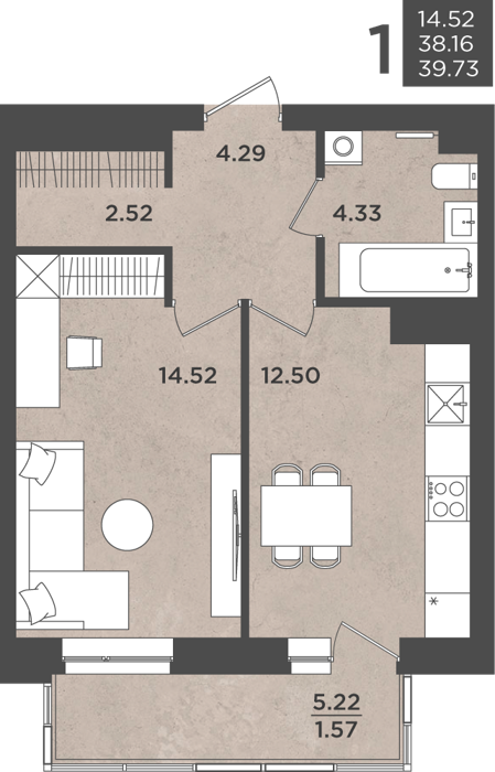 Площадь от 37 м2