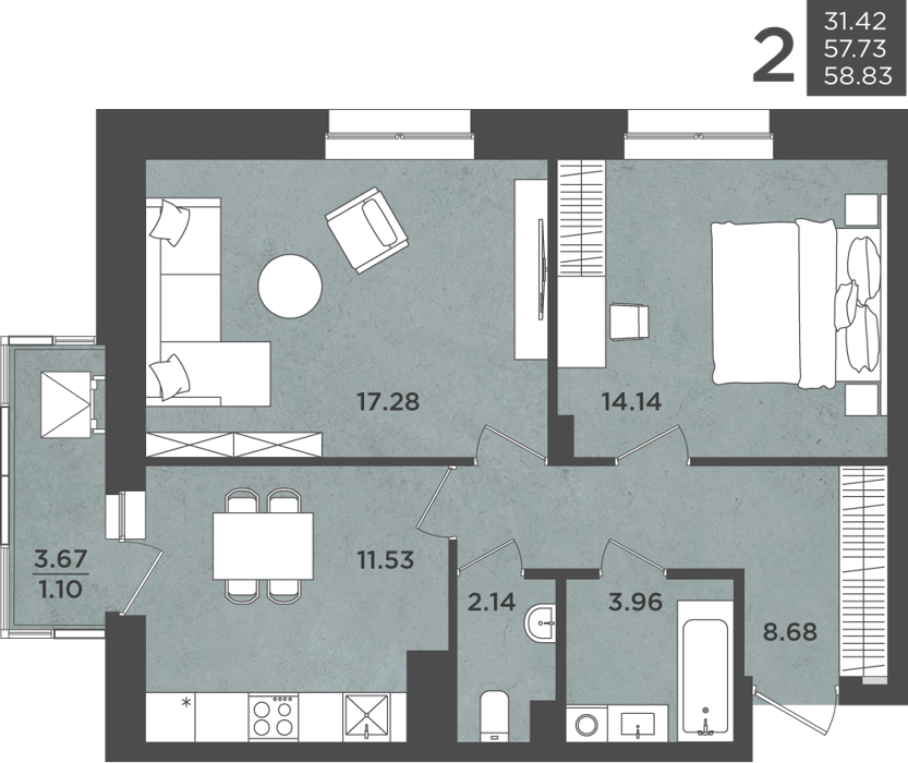 Площадь от 59 м2