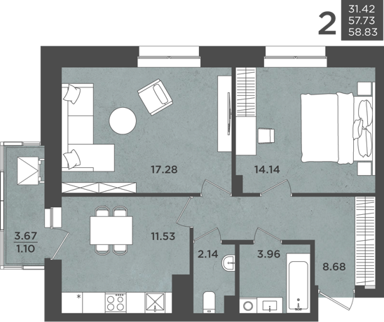 Площадь от 42 м2
