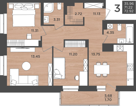 Все квартиры правильной геометрии, что гарантирует максимально полезное использование пространство. Предусмотрены места хранения и гардеробные ниши для шкафов-купе