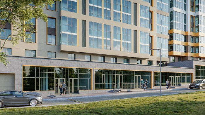 На первом этаже комплекса находятся коммерческие помещения разных направлений, что позволяет сделать пребывание комфортным