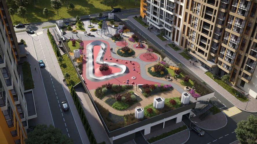 В зоне с лежаками и лавочками взрослые смогут полноценно отдохнуть в конце рабочего дня или же заняться спортом в work-out зоне.