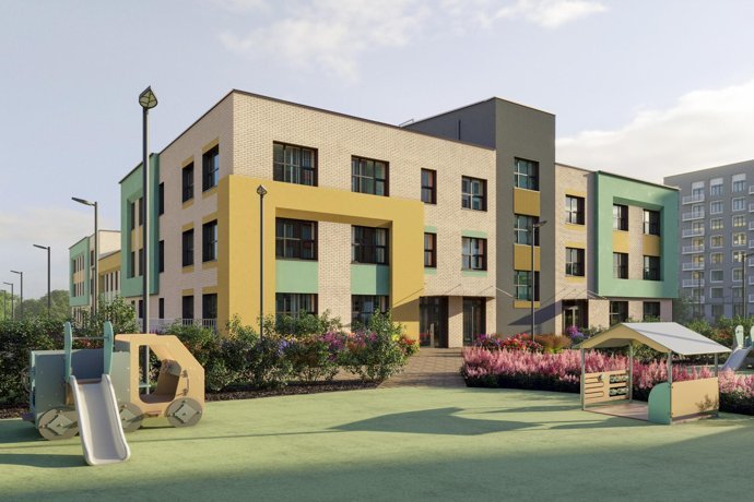 В самом сердце жилого комплекса «Камаполис» от федерального девелопера «Железно» строится трехэтажный детский сад на 320 мест. Он будет называться «Мамонтенок».